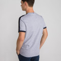 - Inserción en el centro delantero, bandas en hombros y mangas y bajo de las mangas en contraste